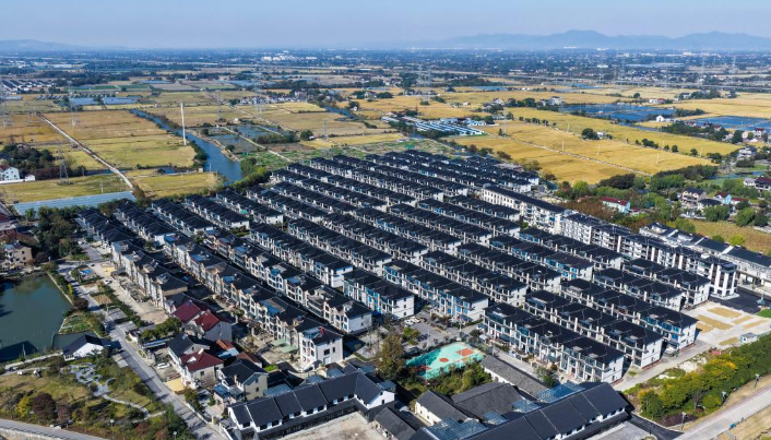 11月19日拍摄的吕山乡龙溪村农民新村(无人机照片)。 近年来,浙江省湖州市长兴县吕山乡积极推进和美乡村建设,通过农村人居环境整