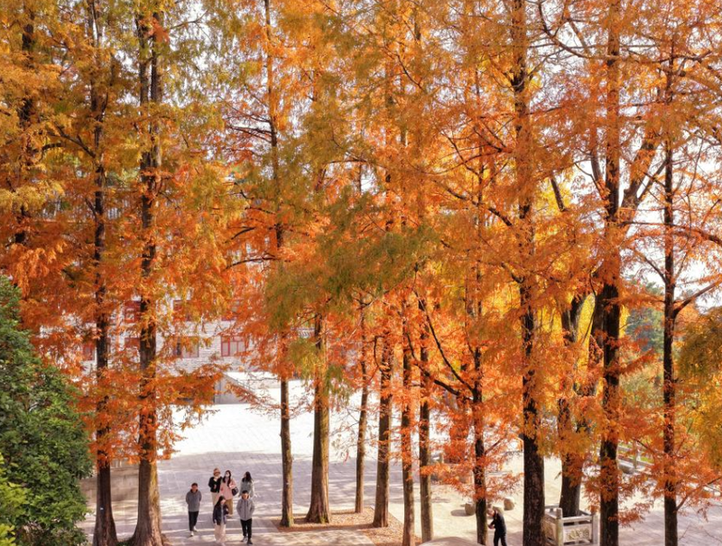11月19日,游客在湖南省衡阳市南岳衡山风景区赏景游玩(无人机照片)。 初冬时节,神州大地悄然开启了如诗如画的“美颜”模式。