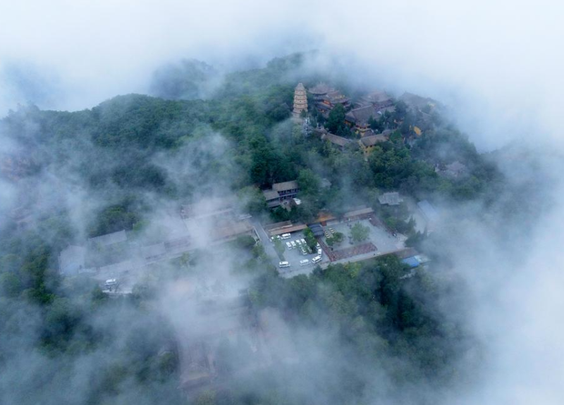 这是2025年7月11日拍摄的平凉市崆峒山雨后云海美景(无人机照片)。 黄土高原西部,六盘山脉由北向南直抵关中平原。这座山脉东麓,