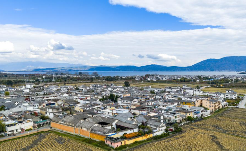 11月24日拍摄的喜洲古镇(无人机照片)。 近日,云南省大理市喜洲古镇风和日丽、景色怡人,吸引游客纷至沓来。 新华社记者 胡超 摄