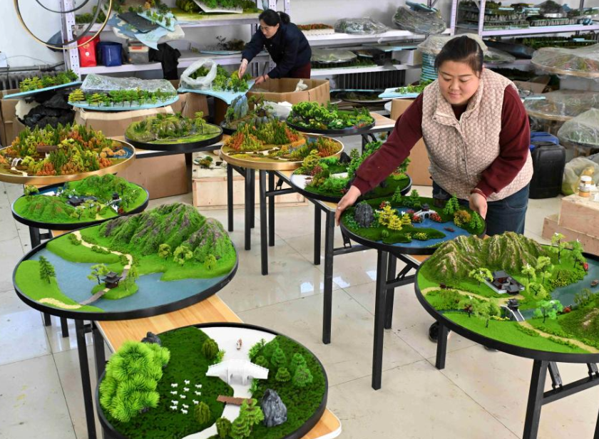 12月8日,工人在河北省石家庄市平山县上三汲乡河渠村一家沙盘企业制作沙盘。 近年来,河北省石家庄市平山县上三汲乡河渠村积极培育