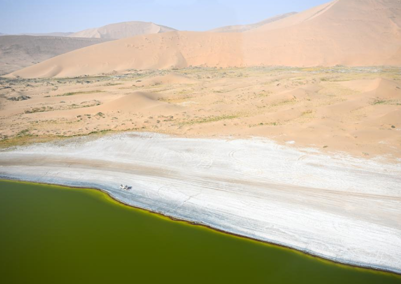 10月22日拍摄的巴丹吉林沙漠秋日风光。 秋日,位于内蒙古阿拉善盟阿拉善右旗的世界遗产巴丹吉林沙漠—沙山湖泊群褪去炙热,绵延的沙