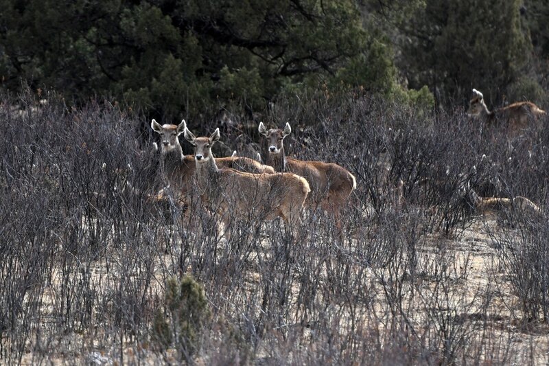 这是3月24日在三江源国家公园澜沧江源园区内拍摄的野生白唇鹿群。 近日,在位于青藏高原腹地的三江源国家公园澜沧江源园区内,一群