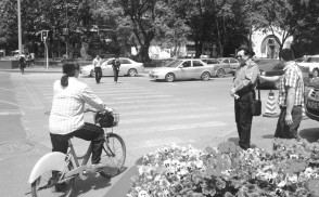“行人听不听劝?乱闯情况好转没?”市道德模范熊德金向文明交通劝导员了解情况时,一名骑电马儿的青年趁着左侧汽车尚未启动,飞快地闯红灯过街。尽管文明交通劝导员急促地吹哨子提醒,对方根本不为所动。