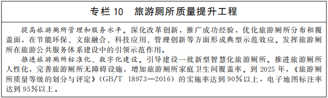 优化旅游公共服务设施布局,完善配套设施和功能。适应游客出行方式变化,加大面向散客的旅游公共服务力度。科学规划建设旅游景区停车场、内部交通、便民设施、标识标牌等,合理配置厕所、垃圾桶,建设一批示范性旅游厕所,进一步巩固旅游厕所革命成果。推动文化和旅游公共服务共建共享,探索建设一批文化和旅游综合服务设施。推动文化服务进旅游景区,在旅游设施、旅游服务中增加文化元素和内涵,体现人文关怀。充分考虑特殊群体需求,健全无障碍旅游公共服务标准规范,加强老年人、残疾人等便利化旅游设施建设和改造,推动将无障碍旅游内容纳入相关无障碍公共服务政策。