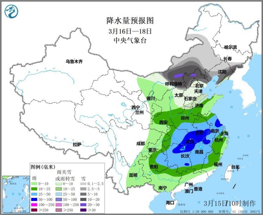 这次冷空气还将给南方带来大范围降雨过程。预计,明天开始,安徽、江苏、湖北、湖南、江西、重庆东部、贵州中东部等地部分地区有中到大雨,其中湖北中东部、湖南北部、安徽中南部、江苏中部等地部分地区有暴雨、局地大暴雨,上述地区累计降雨量普遍可达50至70毫米,局地100至120毫米。