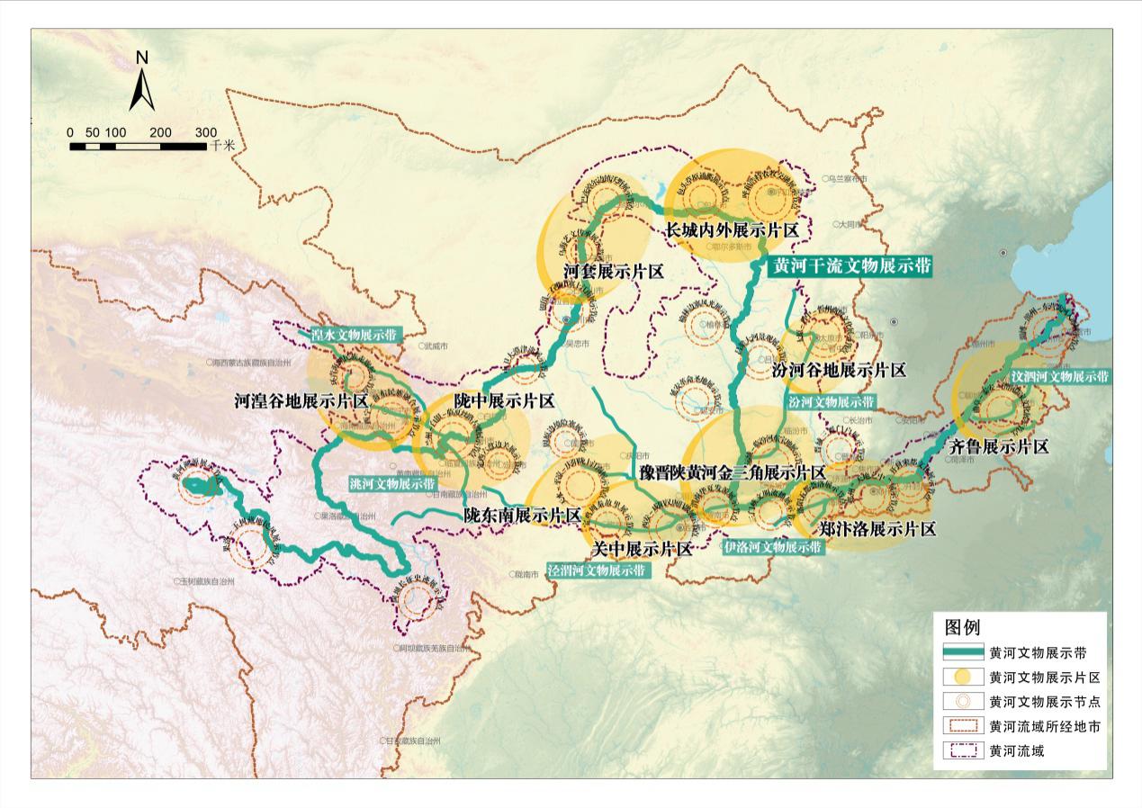 构建黄河文物展示体系。以黄河文物为主要载体,协同黄河水利遗产、农业文化遗产、交通遗迹、历史文化名城名镇名村和传统村落等,以“人类发源”“文明历程”“生产生活”“水利遗产”“水陆交通”“艺术荟萃”“民族融合”“人文景观”“革命传统”九大价值主题为主线,形成黄河文化重要展示节点。依托文脉地缘相近、文化遗产资源密集的区域,形成河湟谷地、陇中、陇东南、河套、长城内外、汾河谷地、关中、豫晋陕黄河金三角、郑汴洛、齐鲁为主的黄河文物展示片区,构建以黄河干流与湟水、洮河、泾渭河、汾河、伊洛河、汶泗河及其相关区域为主要空间的黄河文物展示带。