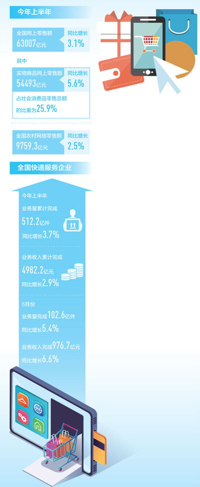上半年,全国实物商品网上零售额同比增长5.6%,网络零售市场企稳回升(一线看消费)