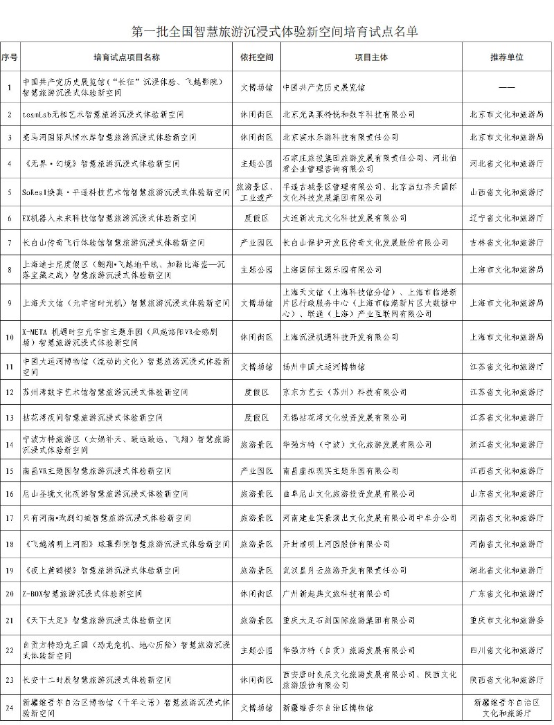 《关于公布第一批全国智慧旅游沉浸式体验新空间培育试点名单的通知》