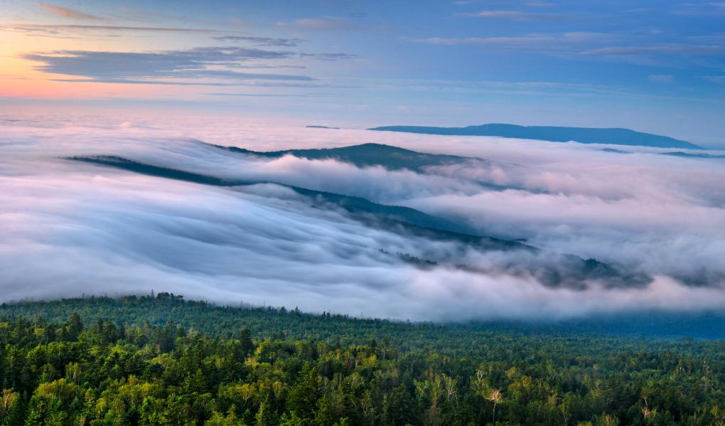 这是位于伊春市的小兴安岭云海景观(2018年8月8日摄)。新华社发