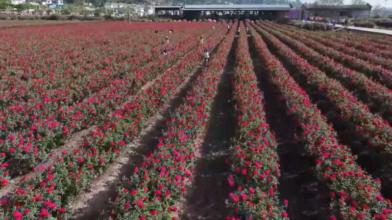 每年5月,云南楚雄彝族自治州姚安县的万亩玫瑰竞相绽放,吸引大批游客前来赏花。