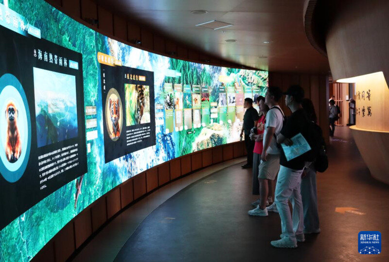 “花瓣”旁的弧形交互屏上介绍着三江源、武夷山、海南热带雨林等中国国家公园在野生动植物保护方面取得的积极成效。朱鹮、林麝等国家重点保护野生动物的体态特征、生存技能、分布情况等文字说明,公园面积、品种数量等直观数据吸引各国游客久久伫立。竹下说,中国的野生动植物种类繁多、超乎想象,中国馆的精彩展示让他大开眼界。