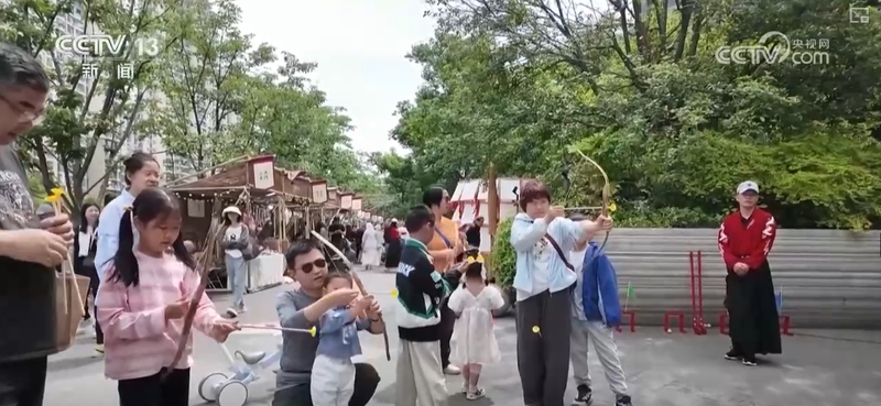 在现场,市民游客们挑战雅士投壶、体验射礼,也可以化身“时空旅人”听江南丝竹,近距离观看传统舞龙舞狮和古风汉服表演。