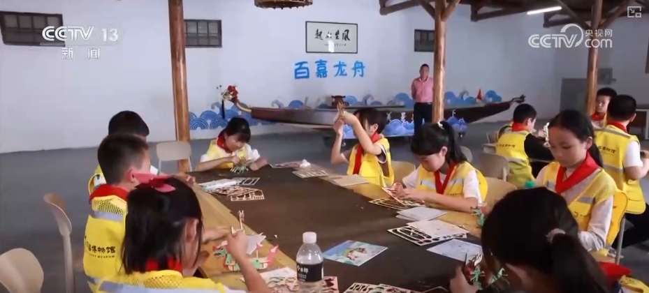 吃完龙舟饭,再来体验划龙舟、打龙舟鼓。劲儿沉、节奏缓是喜庆热闹的游龙专属鼓声,而声脆、点快则是龙舟赛场的冲锋号。振奋人心的鼓声,激起了游客的参与热情,拼鼓坯、拉鼓皮、描绘上色,一双双手齐上阵,亲手制作的小小龙舟鼓。