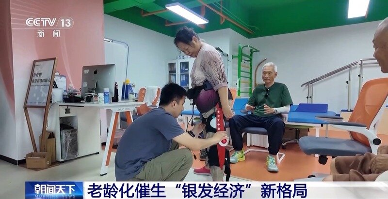 在这个外骨骼机器人康复训练中心,记者看到几位老年志愿者正在测试一款助力行走的外骨骼机器人。