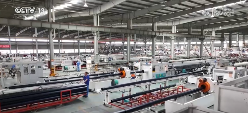 不仅仅是机器人产业,很多行业和领域都感受到了“两重”项目的带动力。在浙江台州这家企业,新建的智能化塑料管道生产车间刚刚落成,企业员工与技术人员正忙着搬运安装机械臂、注塑机等生产设备。就在不久前,直径1.6米的首条实壁管顺利下线。