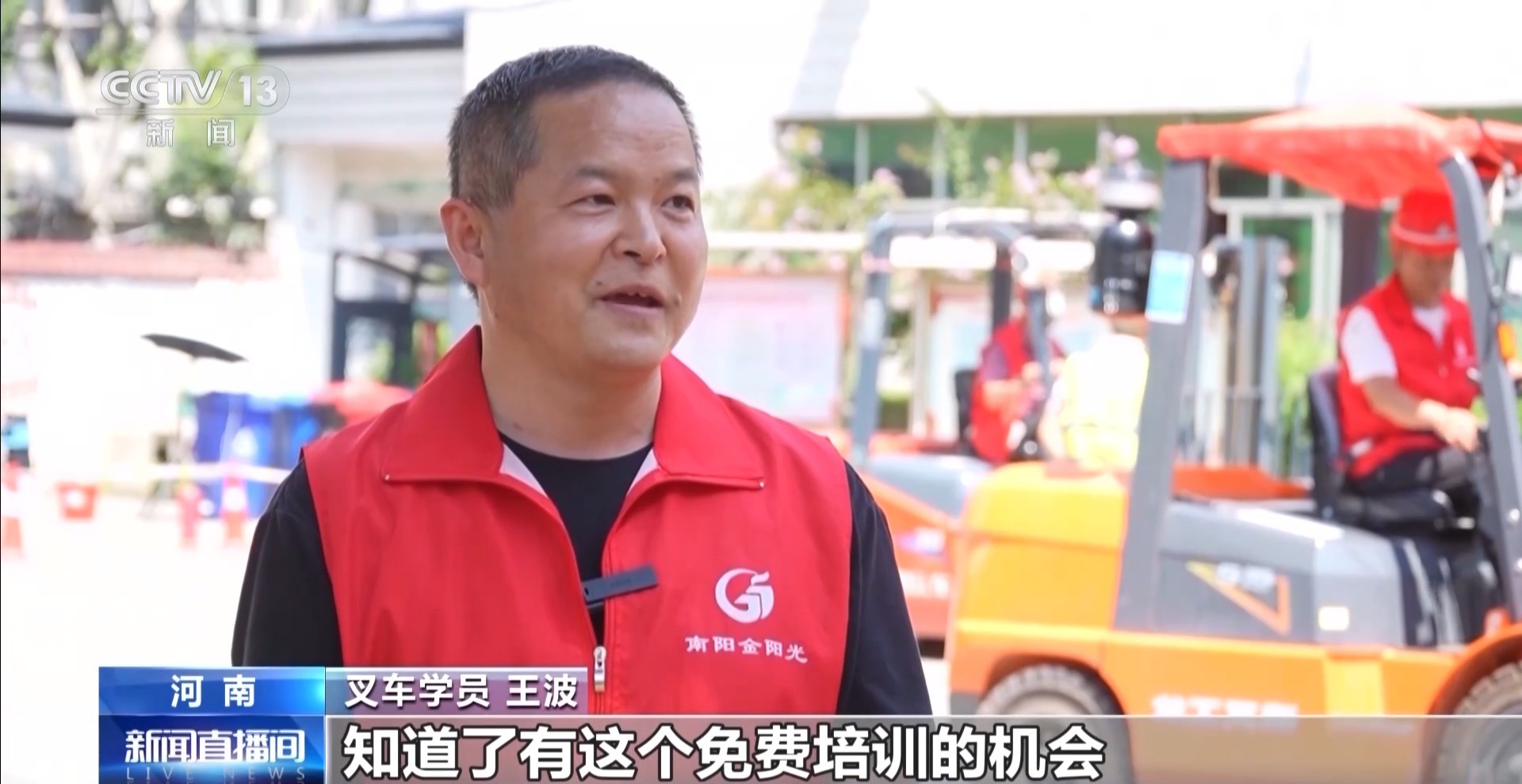 叉车学员 王波:我通过社区的通知,知道了有这个免费培训的机会。然后我也想通过这一次培训提高自己的技能。