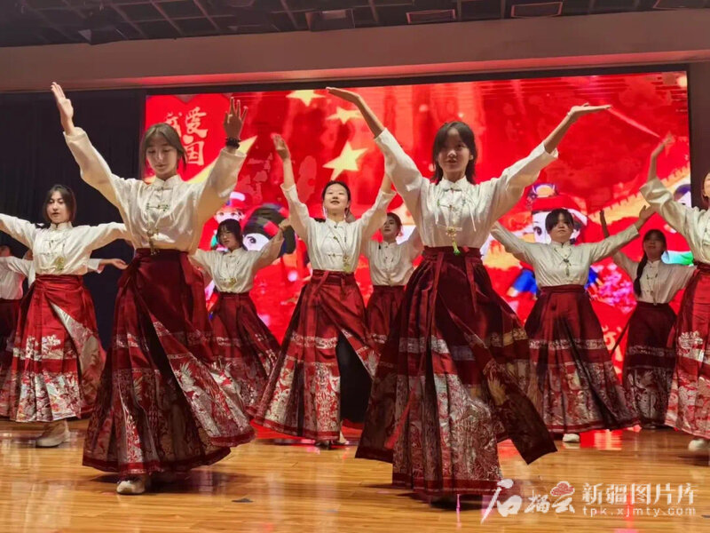 在今年武汉市东湖中学新疆高中班毕业典礼上,学生们正在进行才艺展示。图/武汉市东湖中学提供