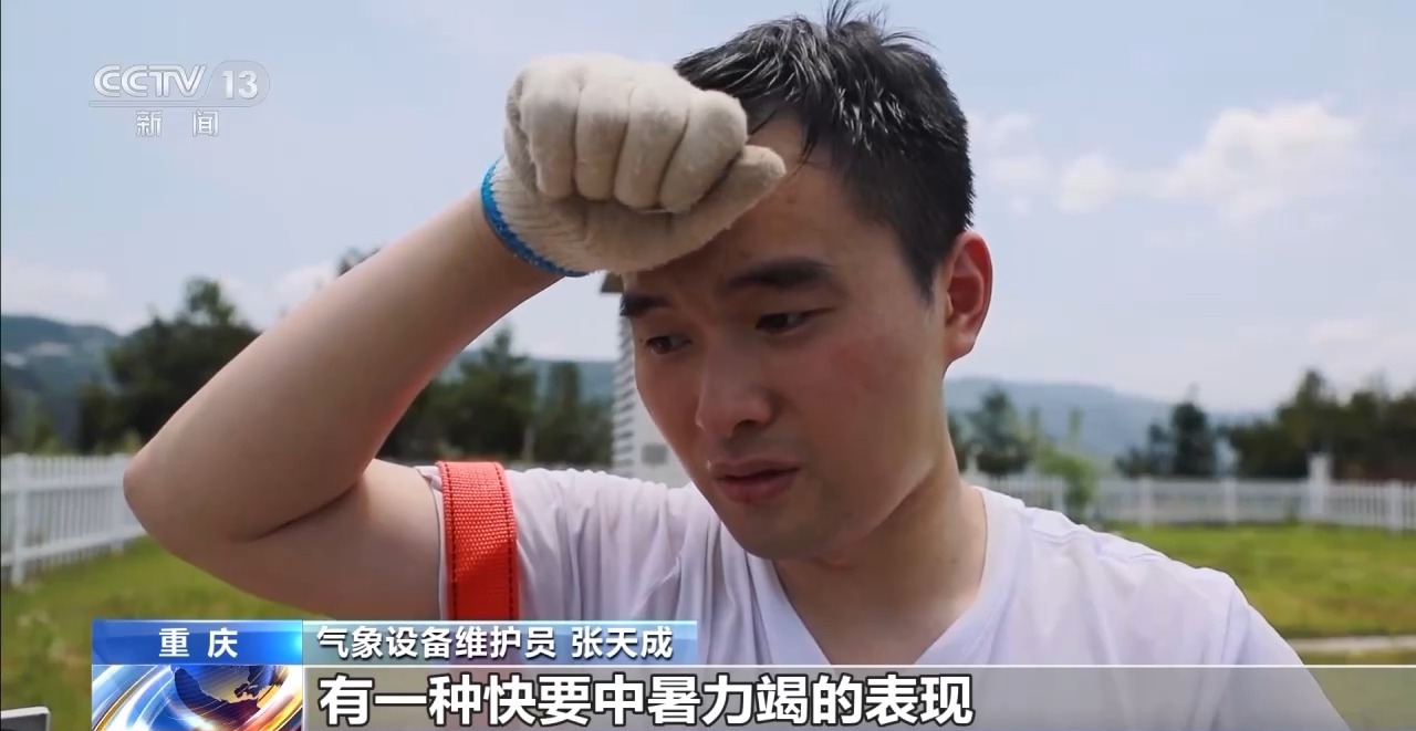 气象设备维护员 张天成:感觉还是汗流浃背,有一种快要中暑力竭的表现。