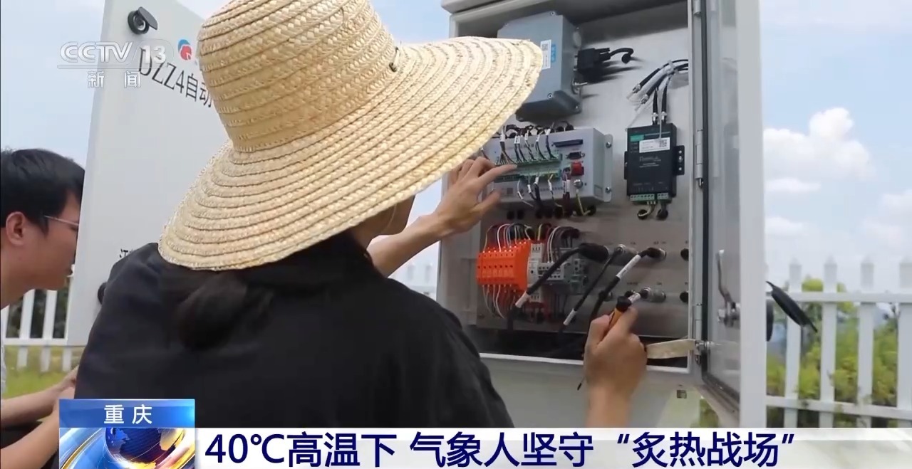 连日来,重庆持续发布高温红色预警,气温突破40℃。精准及时的预警,离不开海量可靠的气象观测数据。7月18日上午,重庆开州区城郊山顶的一处气象监测站数据出现中断,设备维护员们火速赶往现场,进行检修。