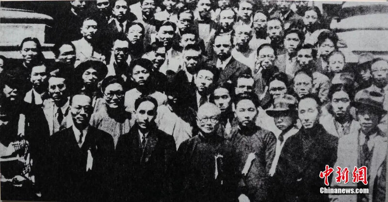 1938年3月27日,中华全国文艺界抗敌协会成立大会在汉口总商会礼堂召开。(翻拍于国民政府军事委员会政治部第三厅旧址纪念馆) 郑子颜 摄