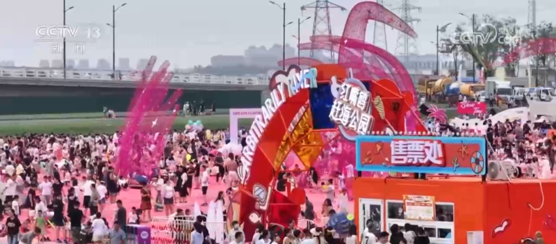 吉林长春:粉红沙滩惊艳亮相 伊通河畔变身度假胜地