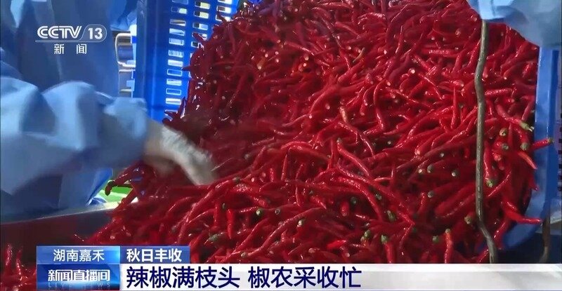眼下,湖南省嘉禾县的辣椒进入丰收季,田间地头,火红的辣椒挂满枝头。当地通过“企业+合作社+农户”模式,形成了辣椒种植、加工、销售的完整产业链,带动农户增收。
