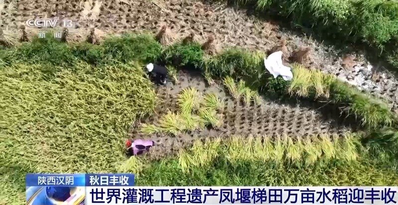 金秋时节,位于秦巴山区的世界灌溉工程遗产——凤堰梯田的万亩水稻陆续成熟。丰收季,当地还通过发展农旅融合助力乡村振兴。