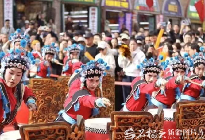 10月1日12时,新疆国际大巴扎步行街化身为一片沸腾的海洋,来自陕西神木的非物质文化遗产代表性项目——“忠勇杨家鼓”在此激情上演,为八方来客献上一场气势磅礴的传统民俗盛宴。
