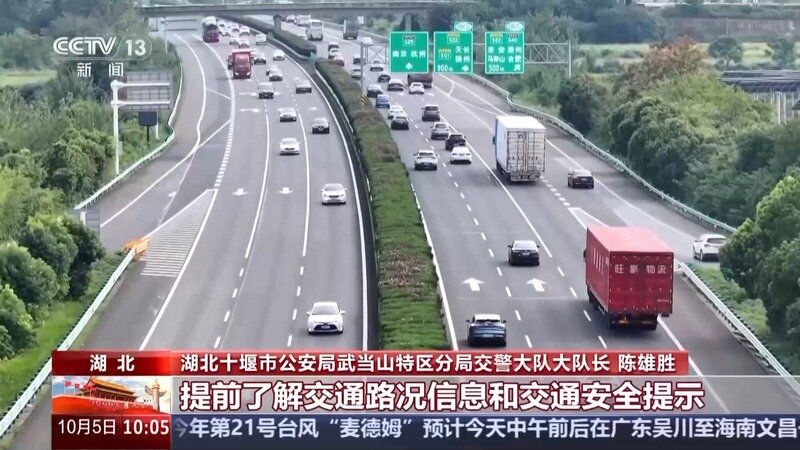 湖北十堰市公安局武当山特区分局交警大队大队长 陈雄胜:自驾出行前,应提前检查车辆状态,及时关注天气情况。提前了解交通路况信息和交通安全提示,合理安排出行时间和交通方式,尽量避开出行高峰和夜间行车,拒绝疲劳驾驶。