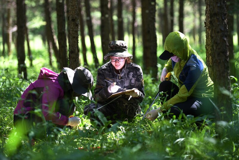 工作人员在河北塞罕坝机械林场采集数据。新华社记者 王晓 摄