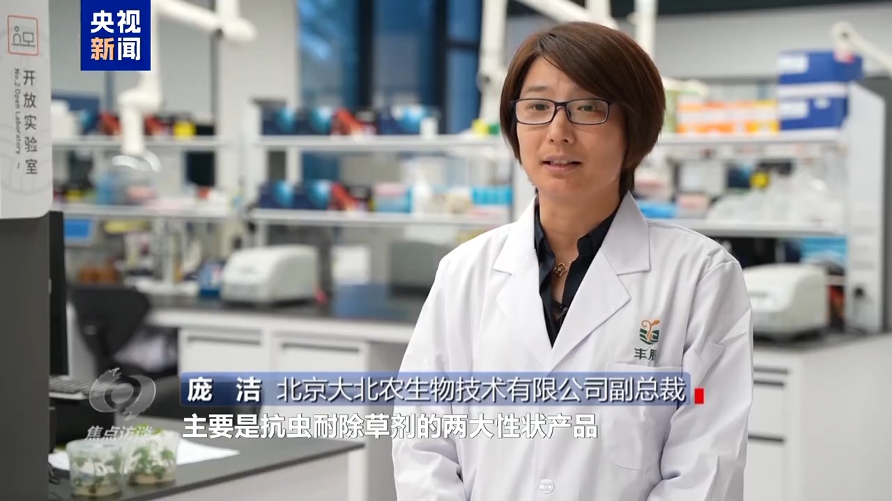 北京大北农生物技术有限公司副总裁 庞洁:主要是抗除草剂和抗虫两大性状产品,生物育种的产品专利成果,打破了原来只有欧美国家在这个领域拥有产品专利权的局面。