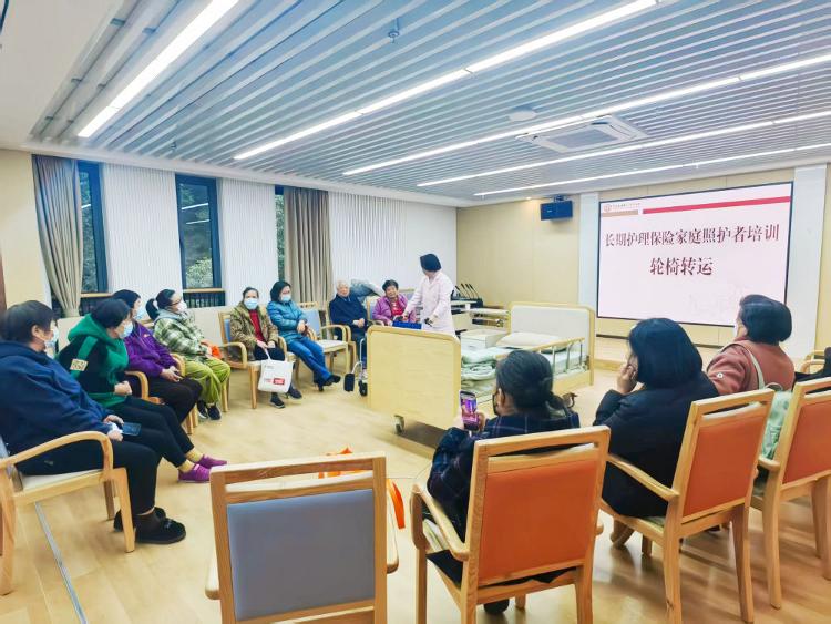 12月22日,宁波市海曙区鼓楼广安居家养老服务中心正在进行长期护理保险家庭照护者培训。新华社记者徐鹏航 摄