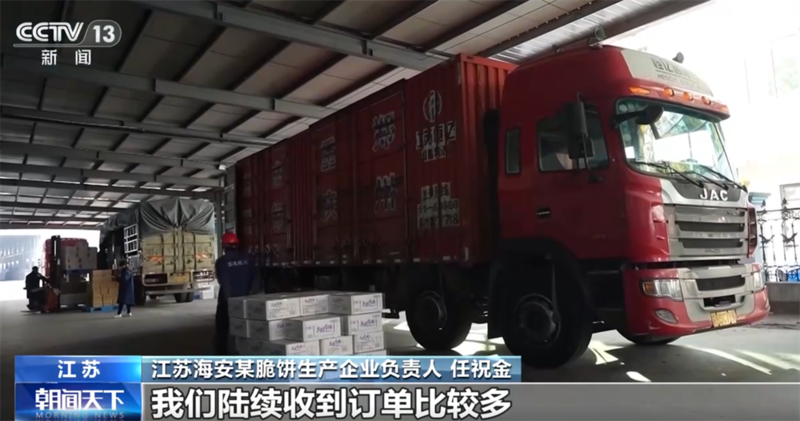 除了手工制作的潮糕,脆饼也是南通地区的传统糕点。随着春节脚步临近,位于海安的这家工业化生产脆饼企业,线上线下订单迎来大幅增长。元旦过后,工人们“三班倒”,加班加点赶制订单。