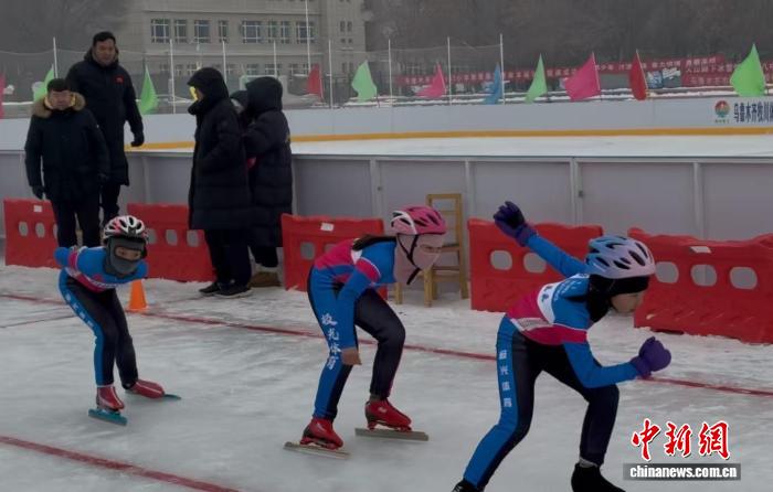 乌鲁木齐市第137小学的学生参与速度滑冰比赛。马子航 摄
