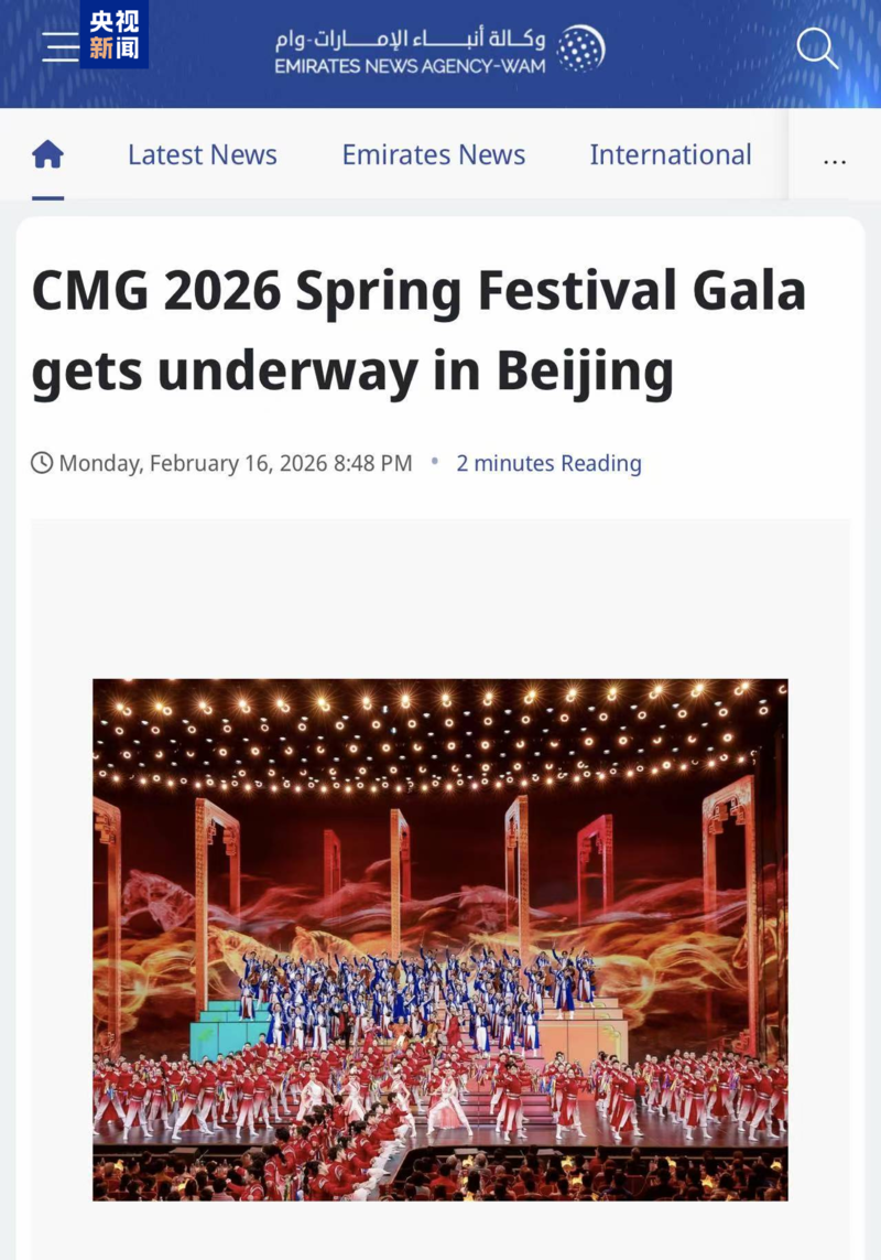 中东主流媒体阿联酋通讯社、半岛电视台等也纷纷跟进,在网站、社交媒体平台持续关注中国春节,聚焦春晚节目亮点,积极报道中国的科技创新成果。