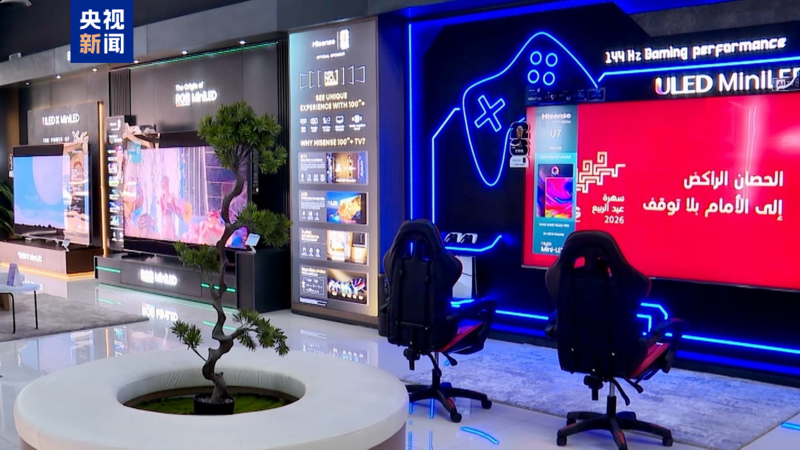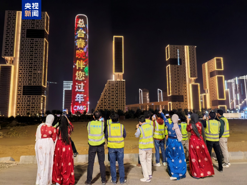 在沙特市中心核心商业街区,总台春晚宣传片通过多块临街商铺屏幕滚动播出,让当地民众在日常生活中打开一扇通往中国的文化之窗。