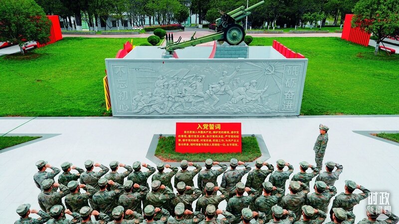 △2025年7月1日,“刘老庄连”组织党员重温入党誓词。(解放军画报谢沅鑫拍摄)