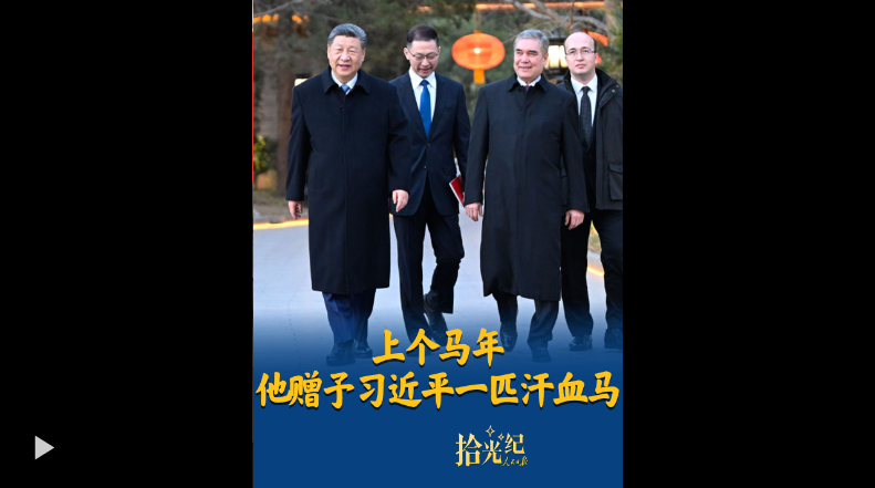 3月18日,国家主席习近平会见土库曼斯坦民族领袖、人民委员会主席别尔德穆哈梅多夫。2014年,别尔德穆哈梅多夫曾赠予中方一匹汗血马。“推动中土关系像汗血宝马一样马不停蹄、一马当先”,一起回顾中土的“骏马外交”。