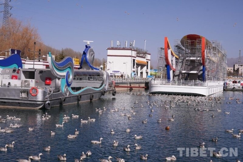 现代化的城市楼宇与连绵的群山相依,成群的斑头雁、赤麻鸭在拉萨河中游弋,勾勒出人与自然和谐共生的高原图景。 摄影:张艺彤