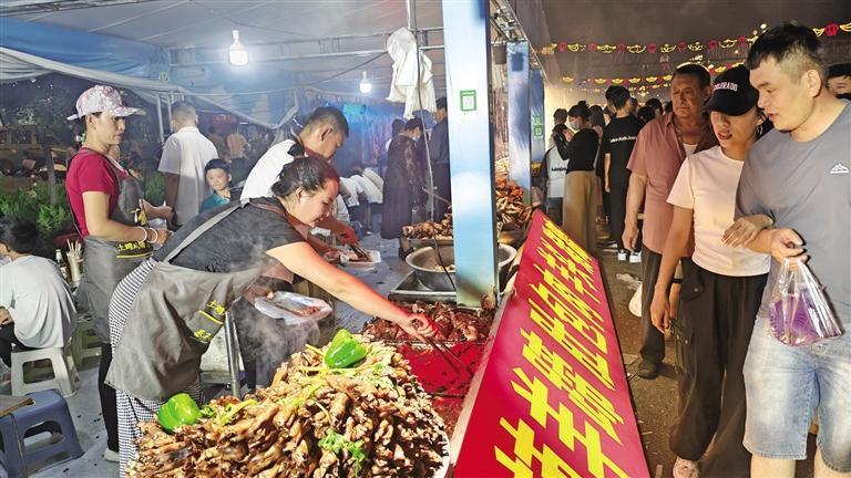 8月23日,在靖边县长城路“清爽榆林·阜美靖边”提振消费季促消费活动现场的摊位前,游客选购特色美食。 夏日傍晚,西安城墙边,老