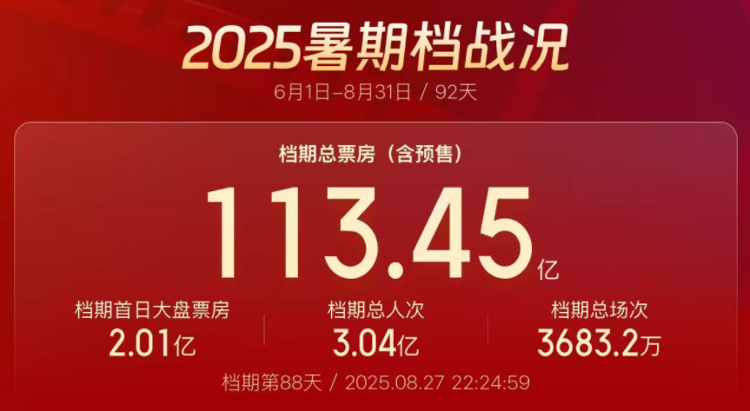 已超去年同期水平 2025暑期档电影总票房达113.45亿