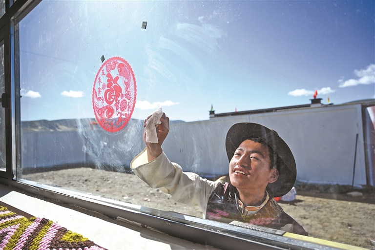 萨迦县雄麦乡扎果村群众擦拭新家窗户。本网记者 扎西顿珠 摄 拉孜县锡钦乡夏拉苏村群众搬新家、品美酒。拉孜县融媒体供图 定日