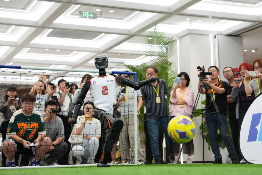 一场比工业革命更为深刻的人工智能革命近在眼前。中国机器人正加速“跑”起来! 带球对抗、过人、射门,进球了!1号球员高举手臂挥