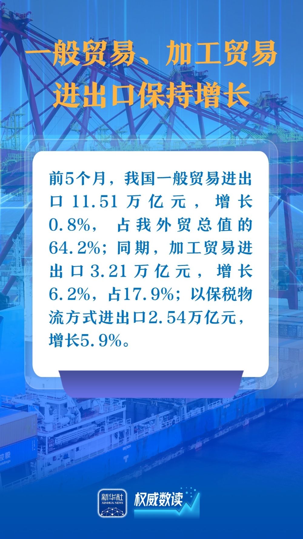 海关总署9日发布数据,今年前5个月,我国货物贸易进出口总值17 94万亿元人民币,同比增长2 5%。以下几组数据,展示出我国对外贸易在外