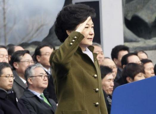 2013年2月25日,首尔,韩国新总统朴槿惠在国会议事堂前的广场上正式宣誓就职,成为第十八任韩国总统。