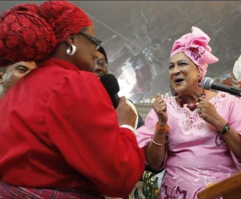 2011年3月30日,马洛尼,多哥总理卡姆拉珀塞德-比塞萨尔在浸信会授权大厅出席第十六届浸信会解放日庆祝活动,图中她正在同与教徒们一起唱歌。