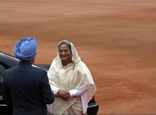 2010年1月11日,新德里,孟加拉国总理谢赫哈西娜正在总统府接待处同印度总理曼莫汉 辛格谈话。