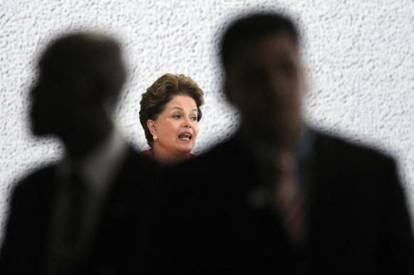 2012年3月1日,巴西利亚高原宫殿,巴西总统迪尔玛 罗塞夫在建筑行业改善工作条件的签字仪式上发表讲话。