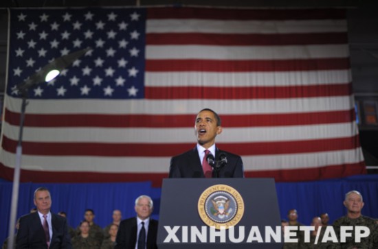 资料图片:2009年2月27日,美国总统奥巴马宣布,美国将在未来18个月内从伊拉克撤离大部分军队,结束在伊拉克的作战任务。 新华社/法新